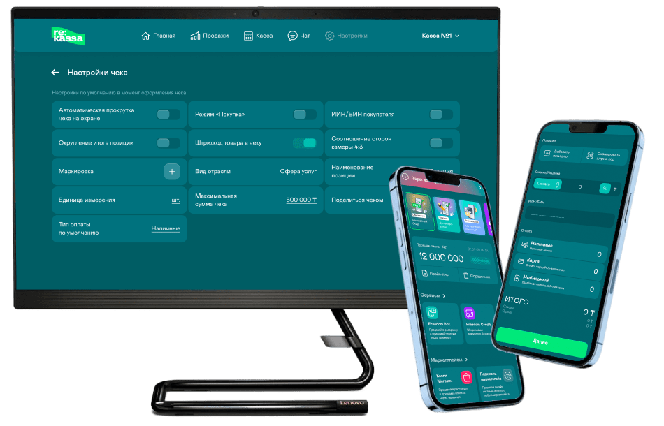 Сіз re:Kassa 3.0 онлайн кассасын кез келген жерден, кез келген таныс құрылғыдан пайдалана аласыз: смартфон, планшет, ноутбук, компьютер. Қажет болса, бірден бірнеше кассаны іске қосуға болады.